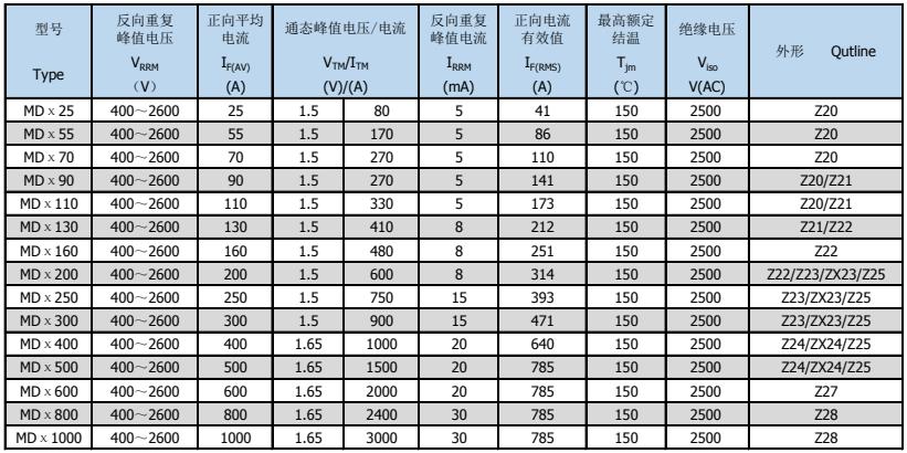 注:型號欄中MDχ表示MDC、MDK、MDA、MDX、MD中任一種。
